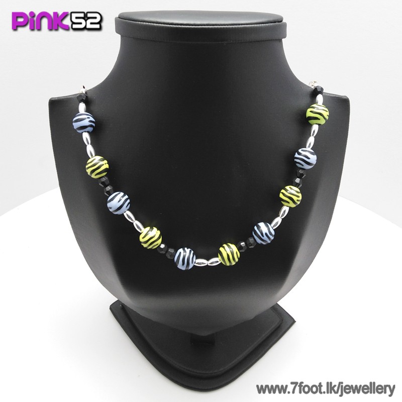 Green,blue,yellow zibra bead necklace