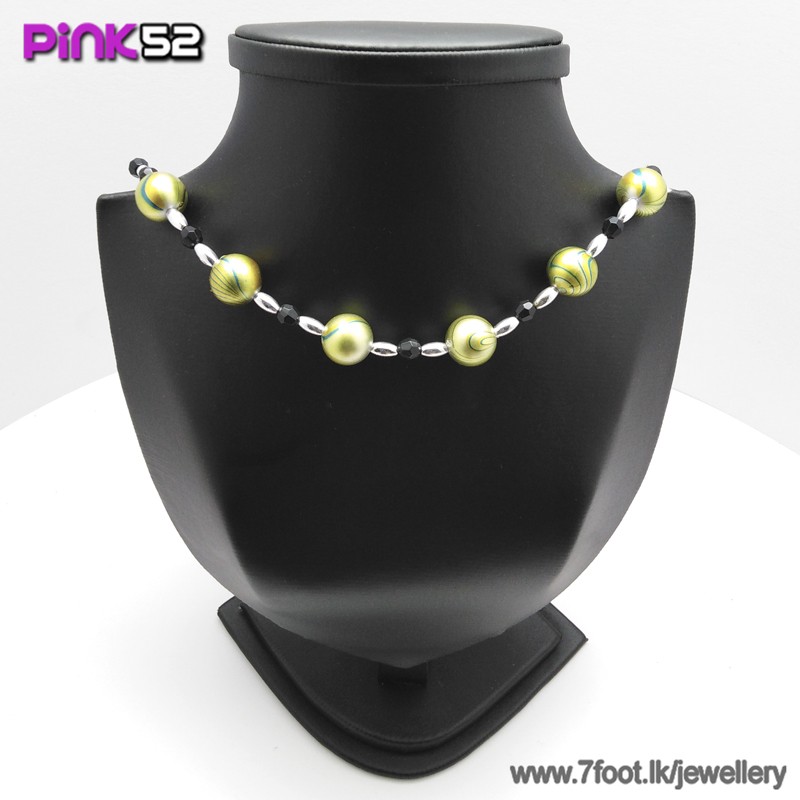Gold pin ball bead necklace.