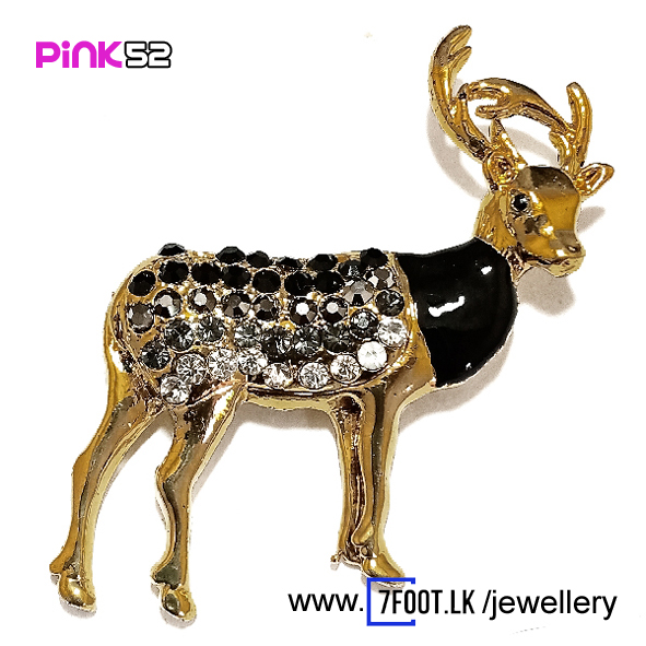 gold color deer pin with rhinestones