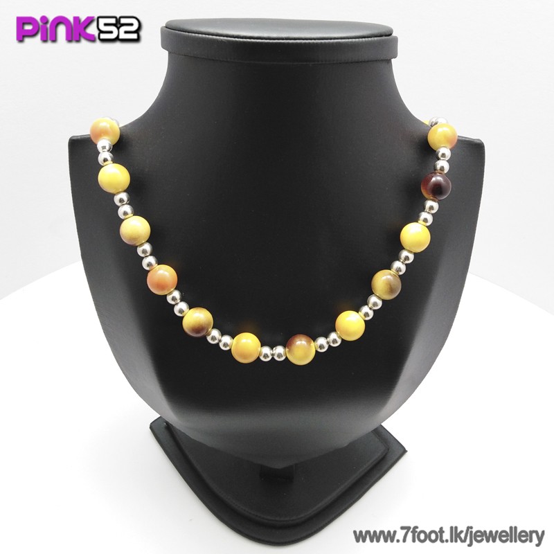 Yellow lines on dark bead necklace