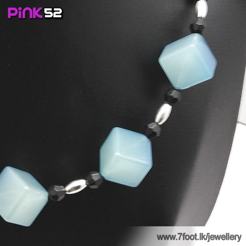 Blue mixed cube bead necklace