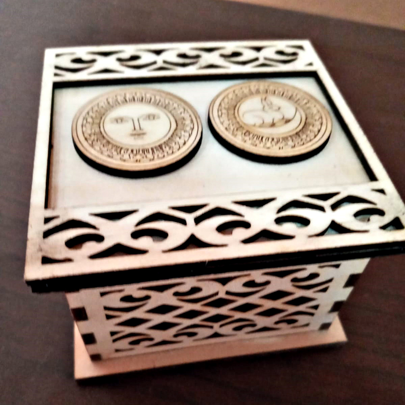 Stylized Laser Cut Wooden Cake boxes.