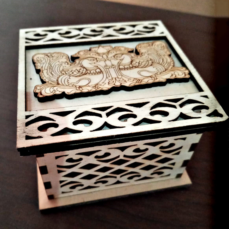 Stylized Laser Cut Wooden Cake boxes.
