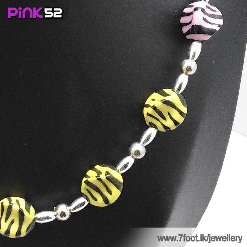 Yellow and pink zibra bead necklace.