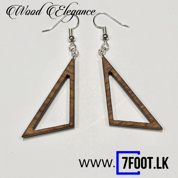 wood triangular design earrings