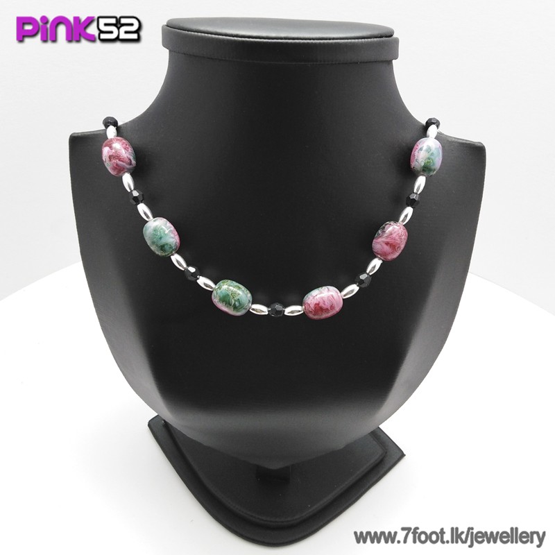 Green electro lined jumbo and small bead necklace