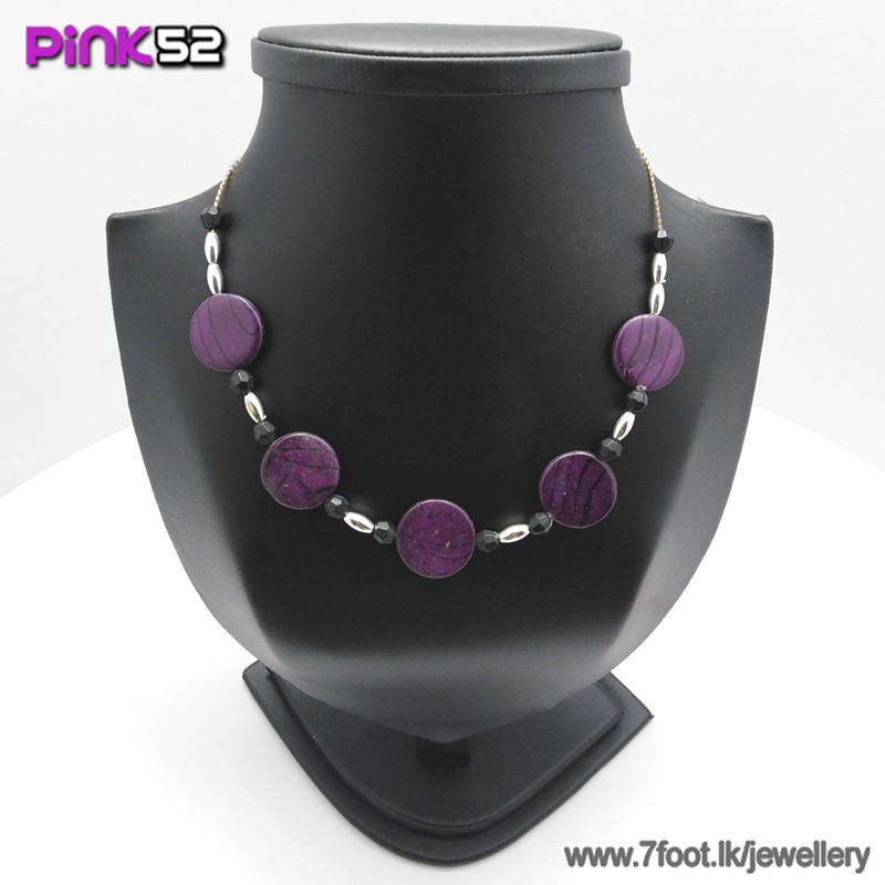 Purple with black lines pebble bead necklace.