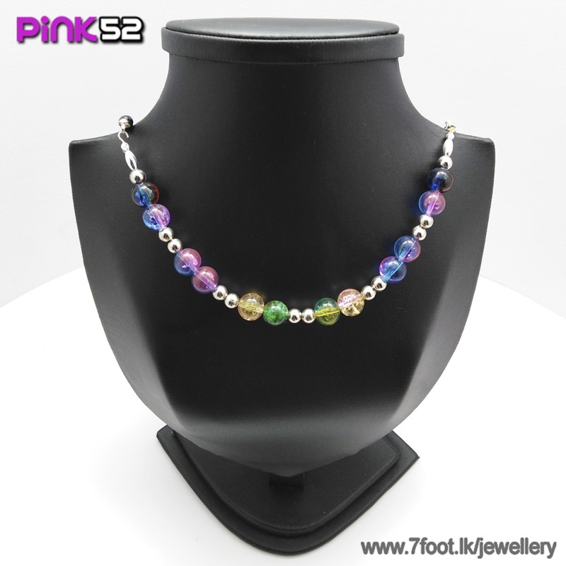 Purple/green/blue mixed bead necklace.