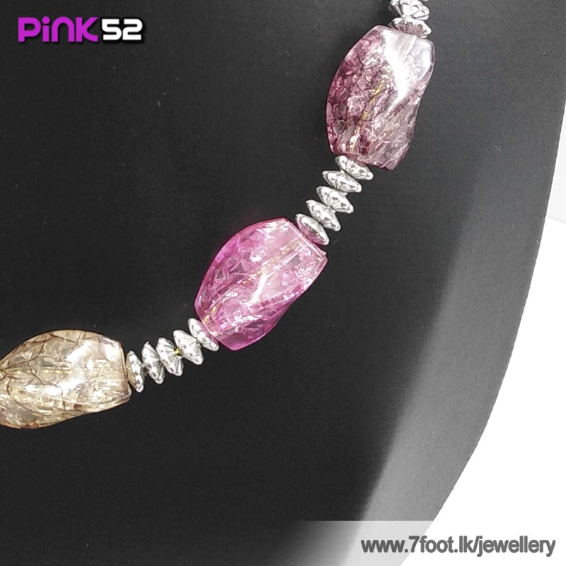 Pink-red-yellow glossy stone bead necklace
