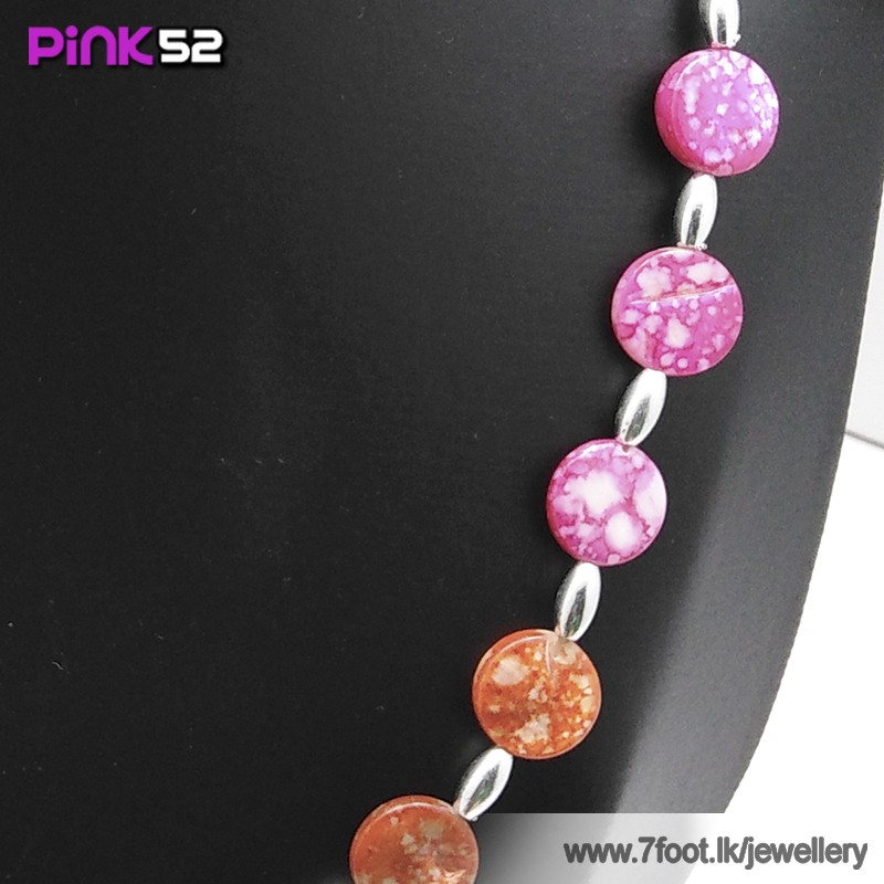 Pink and red pebbles bead necklace