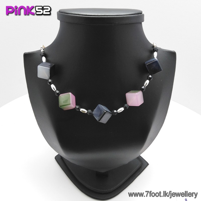 Pink and green mixed cube bead necklace.