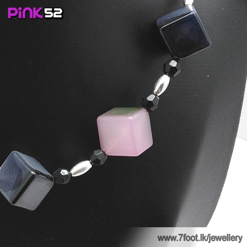 Pink and green mixed cube bead necklace