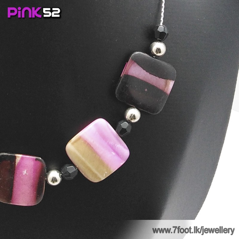 Orange-pink-cream squre bead necklace