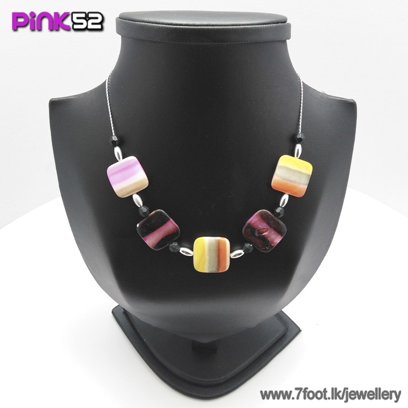 Orange-green-cream squre bead necklace