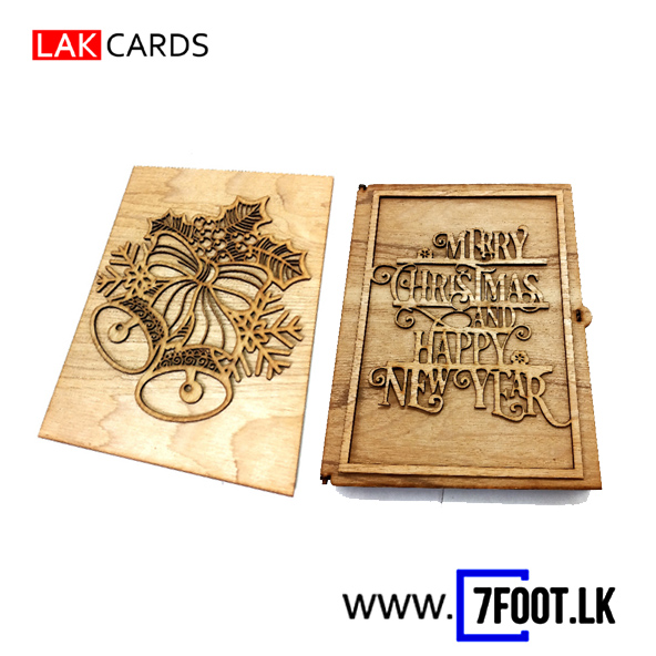 Laser cut wood Christmas Card with Box Jingle Bells emblem (foldable)